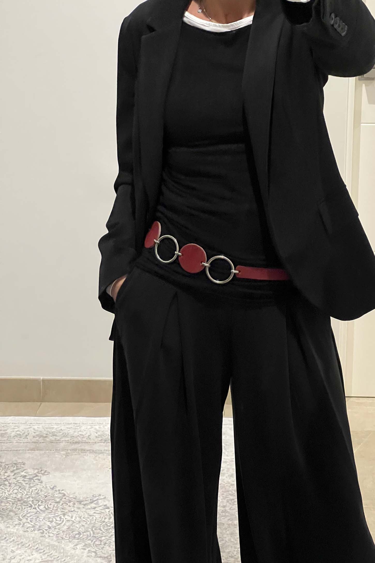 Cinturón piel aros plata rojo