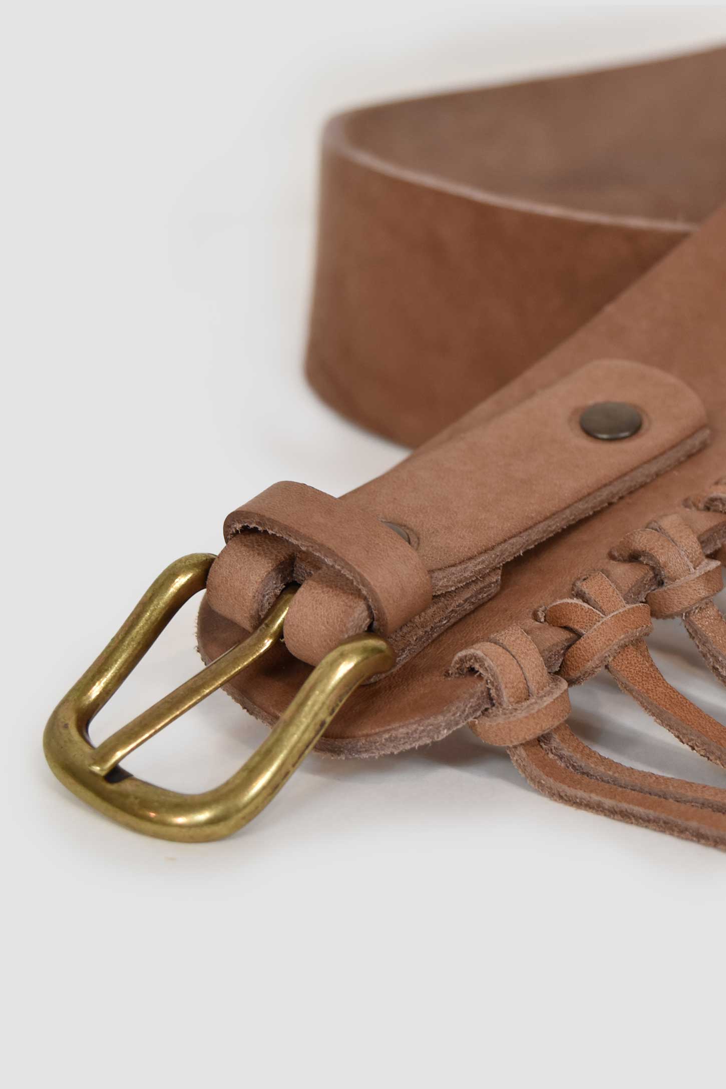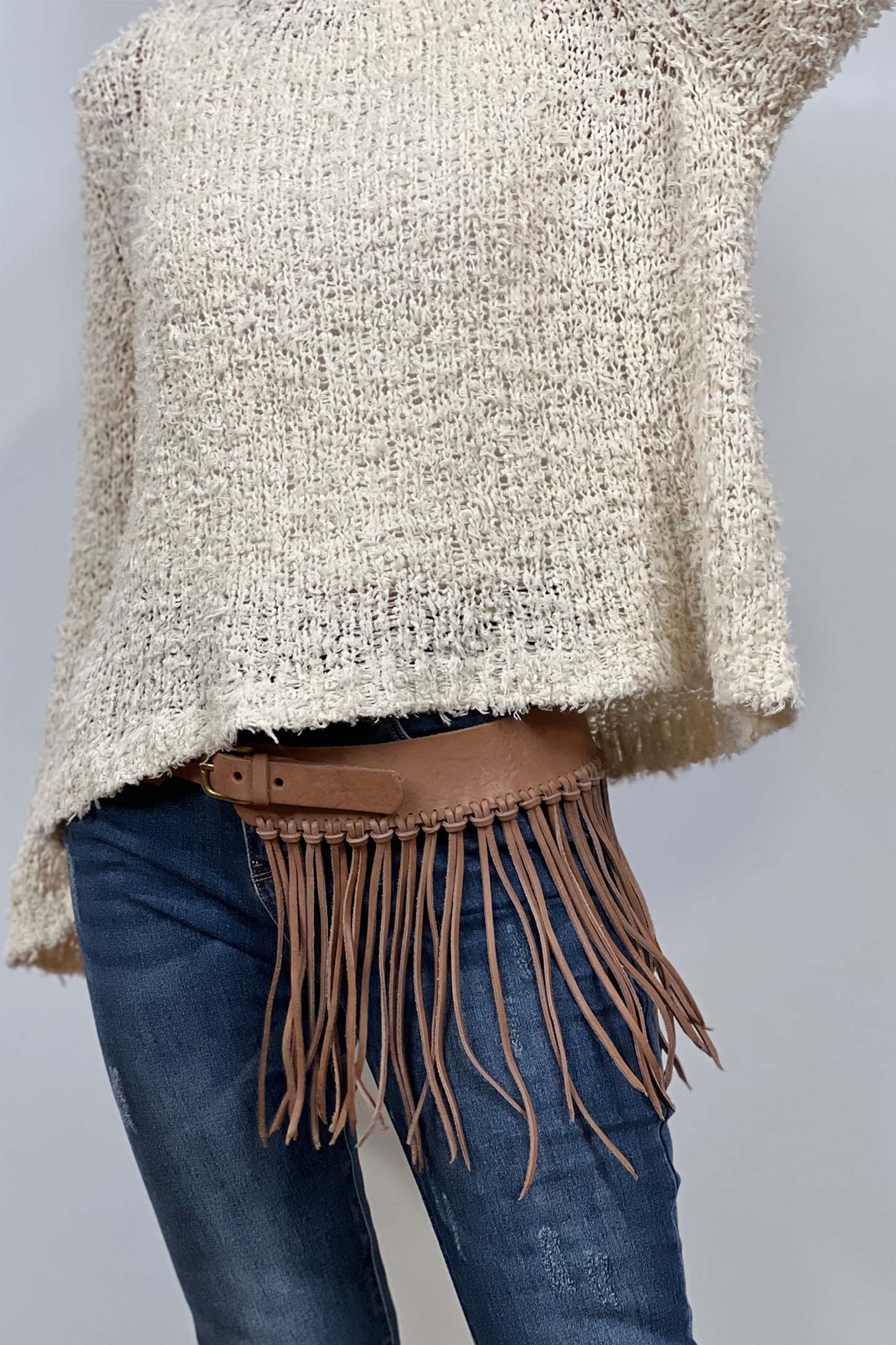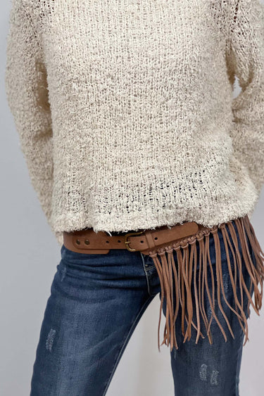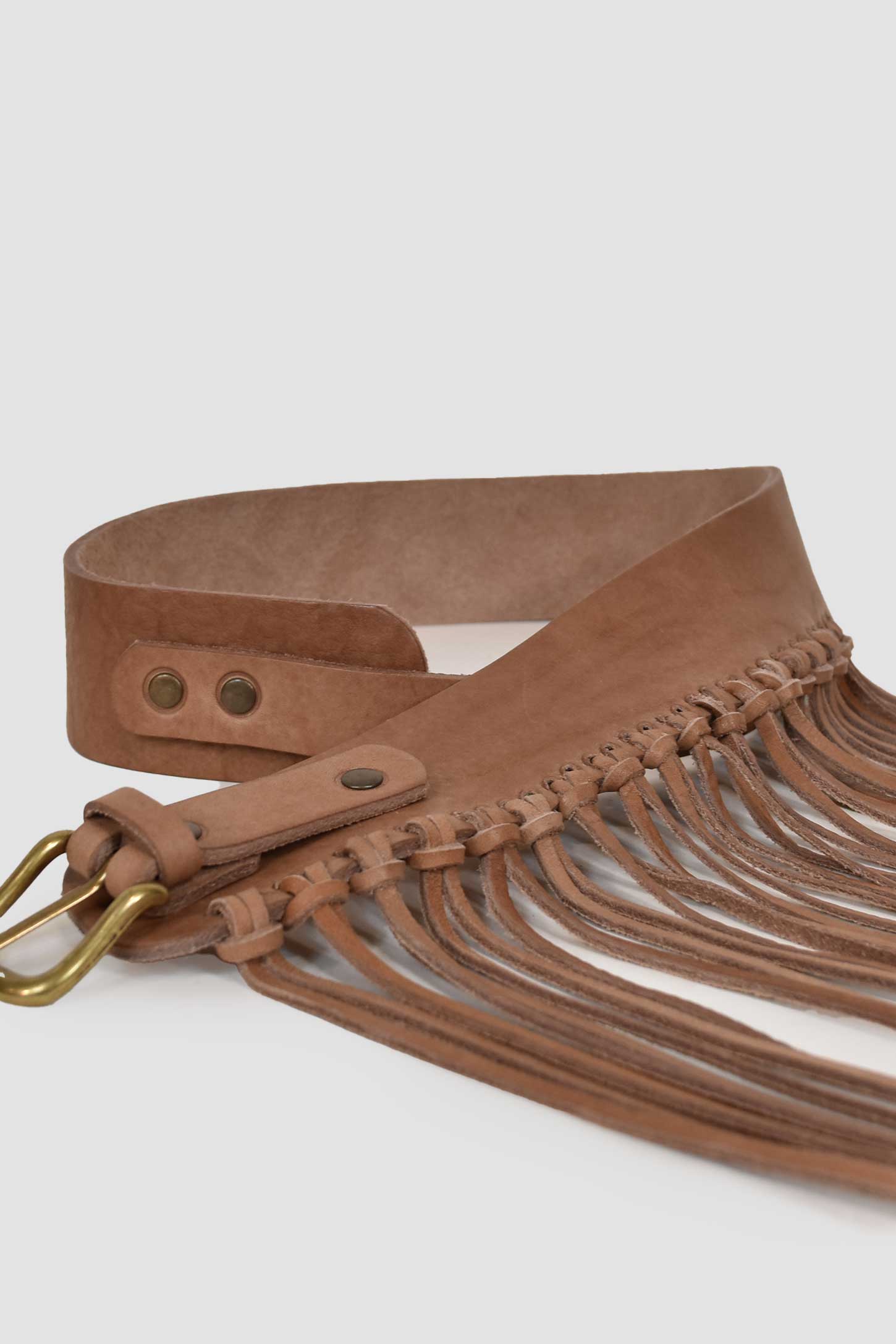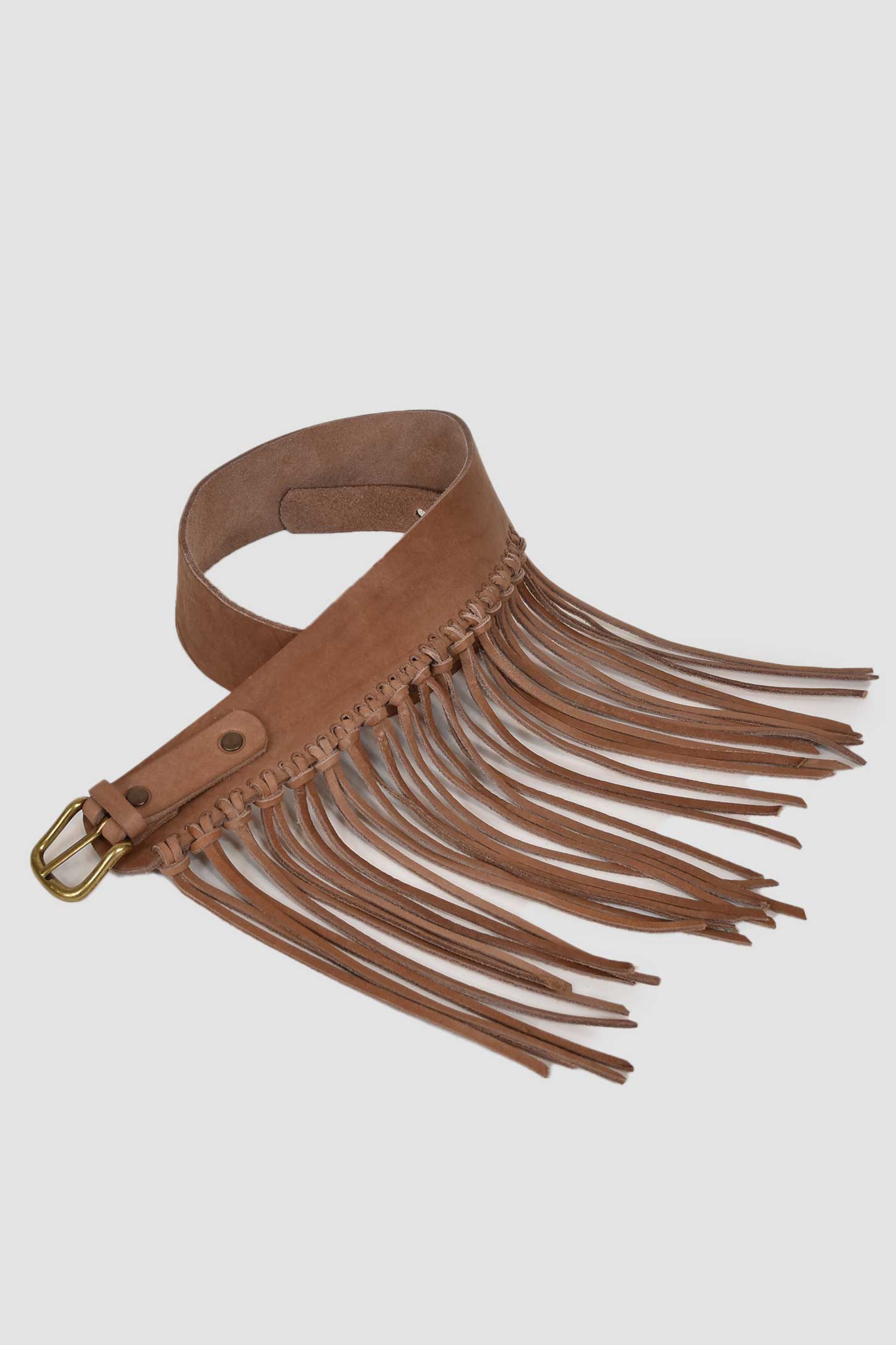 Cinturón piel flecos natural